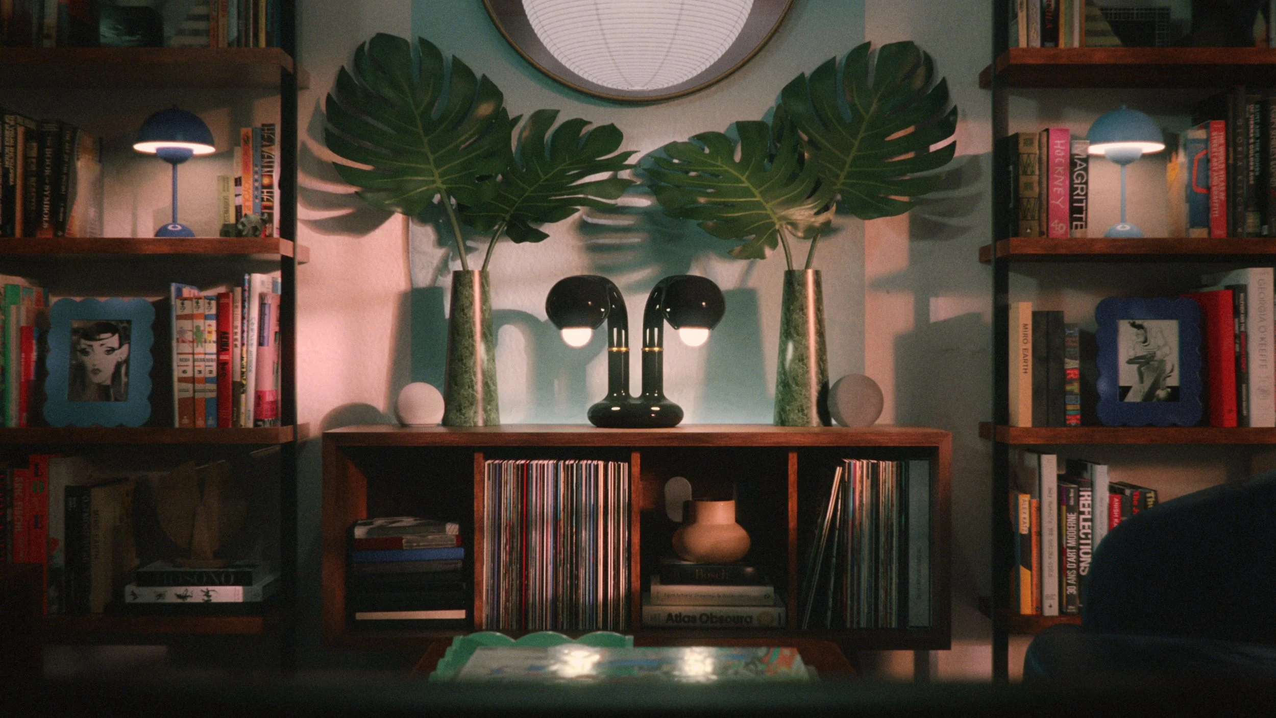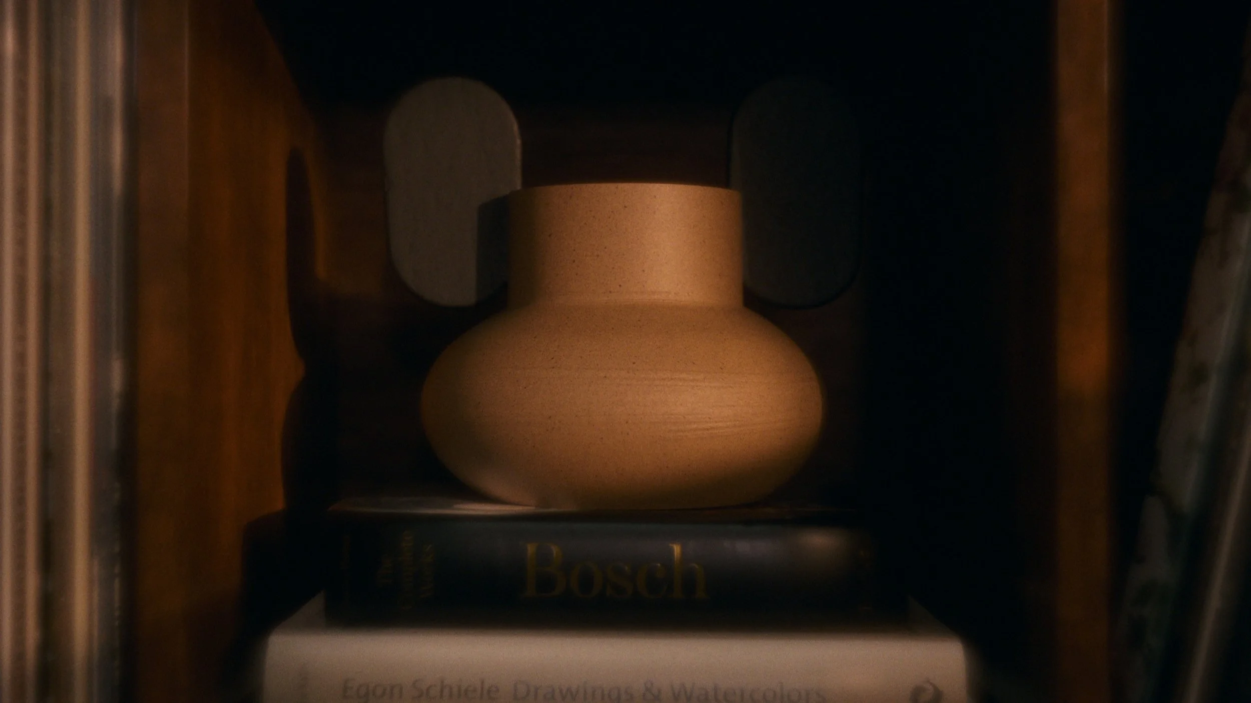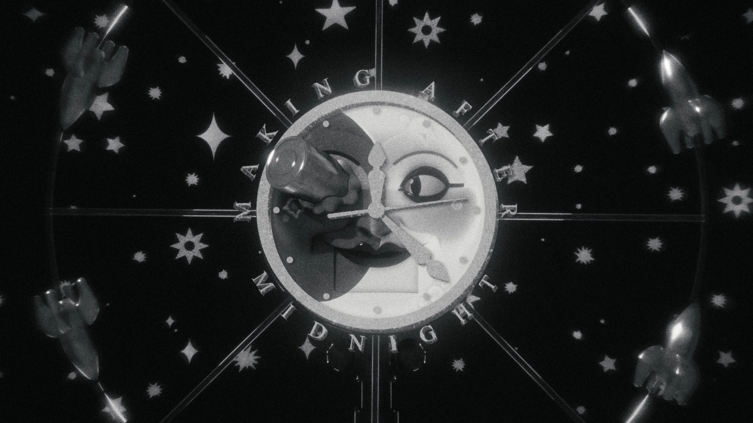 The second episode of Making After Midnight shifts into a film-noir aesthetic, and the opening titles follow suit. The dual sun-and-moon structure was relit and rerendered to feel like a practical FX miniature, moving away from cel-shaded CG while still being rendered entirely in Octane.