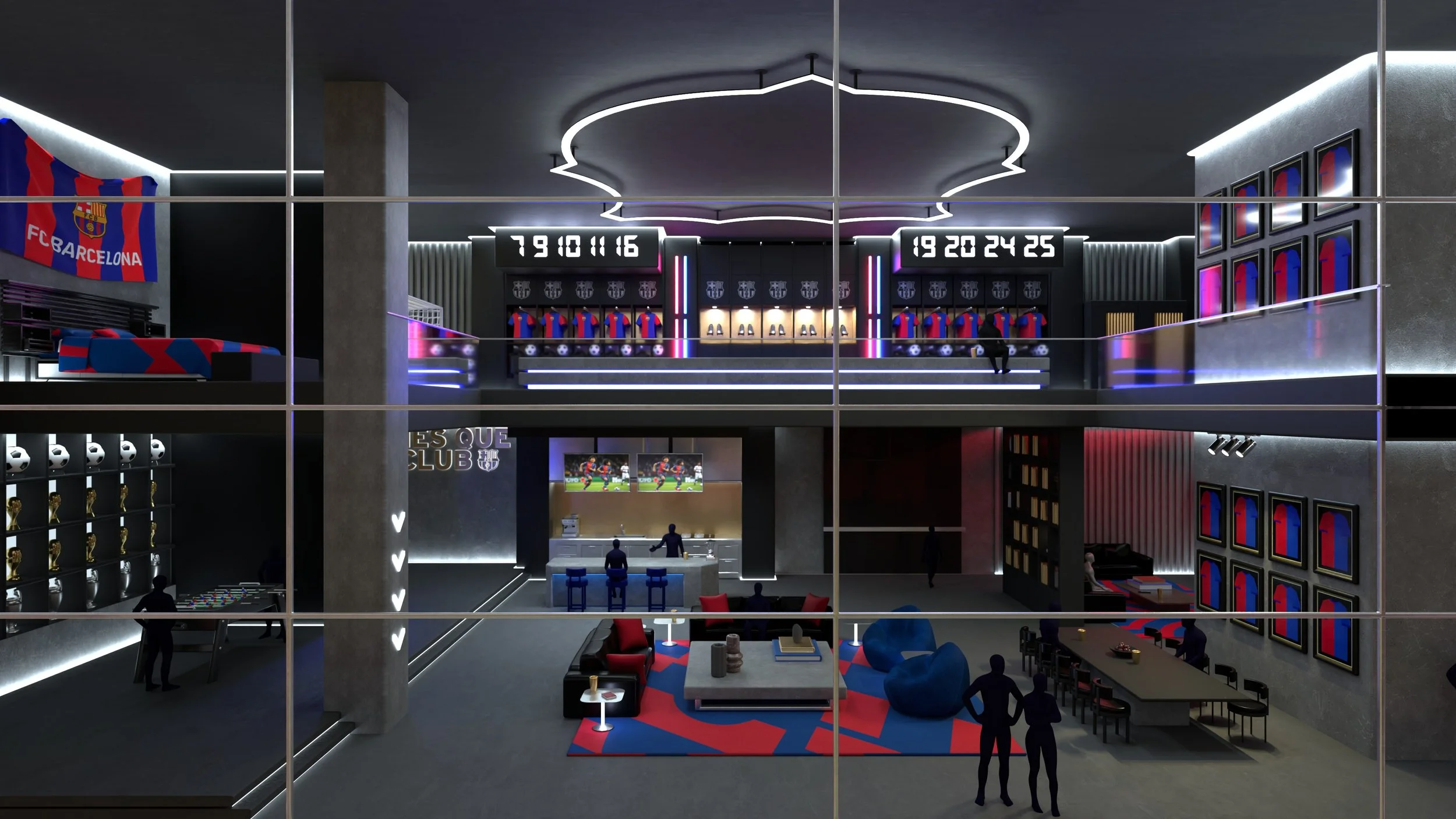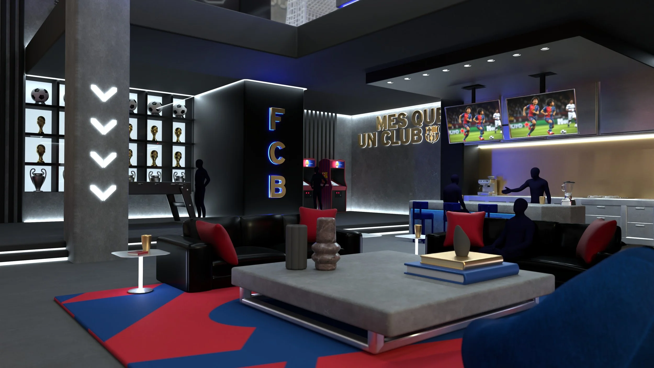 In a quick pitch for FC Barcelona, I designed a two-level clubhouse space blending lounge, hotel, and play-area functions within a custom stadium environment. For this, I used Blender and Octane.